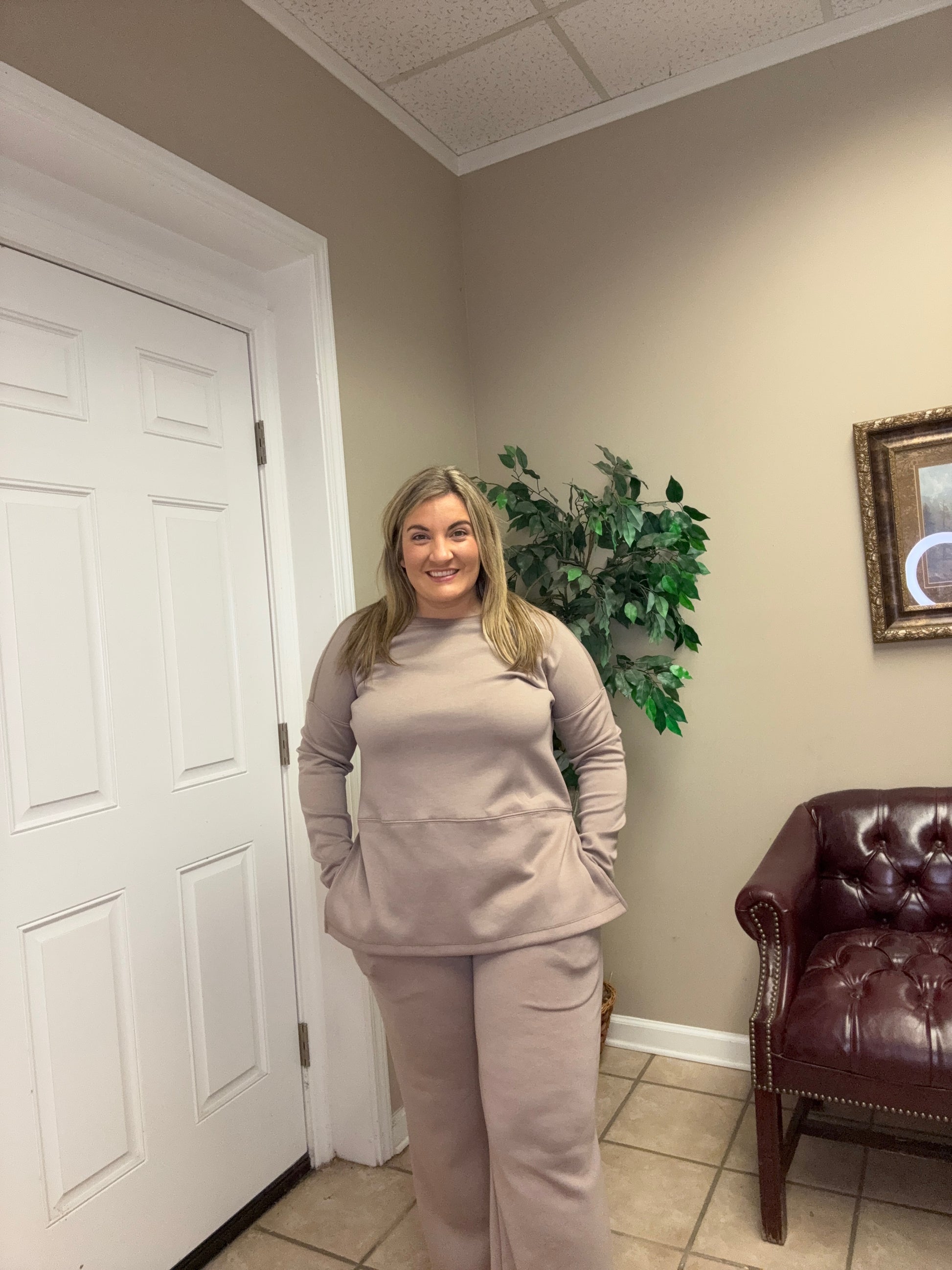 Introducing the ultimate travel set designed for both comfort and style. A long sleeve round neck tunic top paired with straight relaxed pants, featuring a wrinkle-resistant fabric that makes it perfect for on the go lifestyles. This travel friendly sets are incredibly lightweight, making them easy to pack and carry, while the wrinkle-resistant properties mean you can arrive at your destination looking polished and professional! Whether you're lounging at an airport, exploring a new city, or enjoying your dinner, this ensemble has you covered!